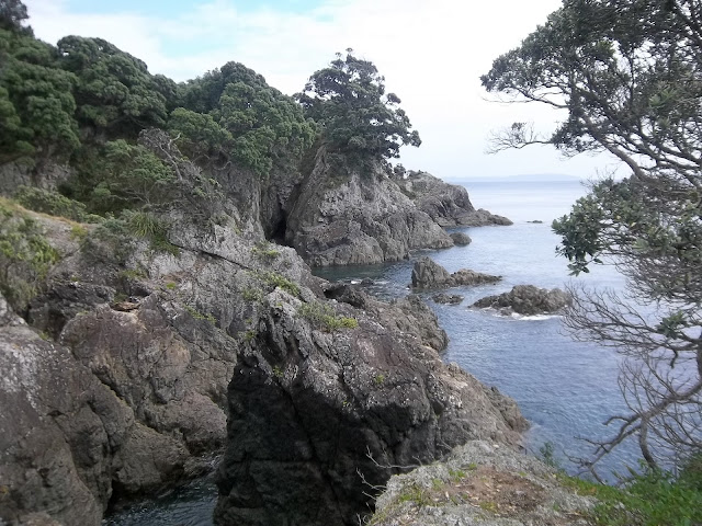 We get up about 6 am to catch the dawn chorus then have breakfast altogether round the kitchen table, and go off walking again up the eastern side of the island. Make our way down to Fisherman’s Bay where there’s a family of oyster catchers and some shags. It’s a lovely peaceful little bay with loads of sea shells and drift wood washed up. Then the kids arrive and chase the birds away as they charge over to show us their beach-combing finds. They are great kids but don’t really mix with bird-watching. Back to the bunkhouse for lunch then pack up to go back on the ferry. It’s a windy day and by now the sea’s looking pretty rough and I’m wondering if we’re going to make it back at all. Turns out to be a fun journey with loads of shrieking and laughing as the boat rocks and reels its way back to Auckland.